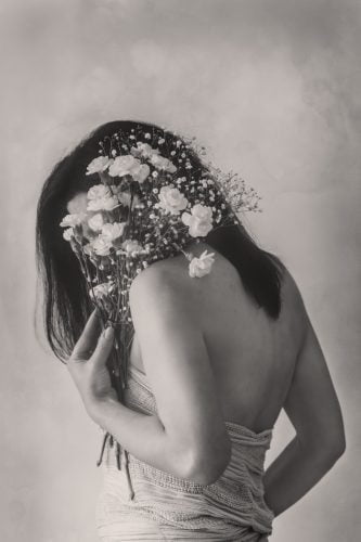 There are also different ways to convert an image to black and white in editing, from simply fully desaturating an image to adding a black and white adjustment layer. In the image below, I used a gradient map to create the black and white effect so I could add different shades of black, white and grey to the shadows, midtones and highlights (read more about the making of this conceptual self-portrait).